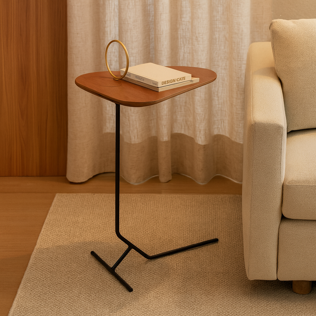 A mesa lateral Anello combina linhas delicadas e estrutura leve, criando um equilíbrio perfeito entre forma e função. Seu tampo em lâmina natural contrasta com a base metálica em pintura epóxi ou automotiva, resultando em uma peça versátil e elegante — ideal para acompanhar sofás e poltronas sem pesar no ambiente.