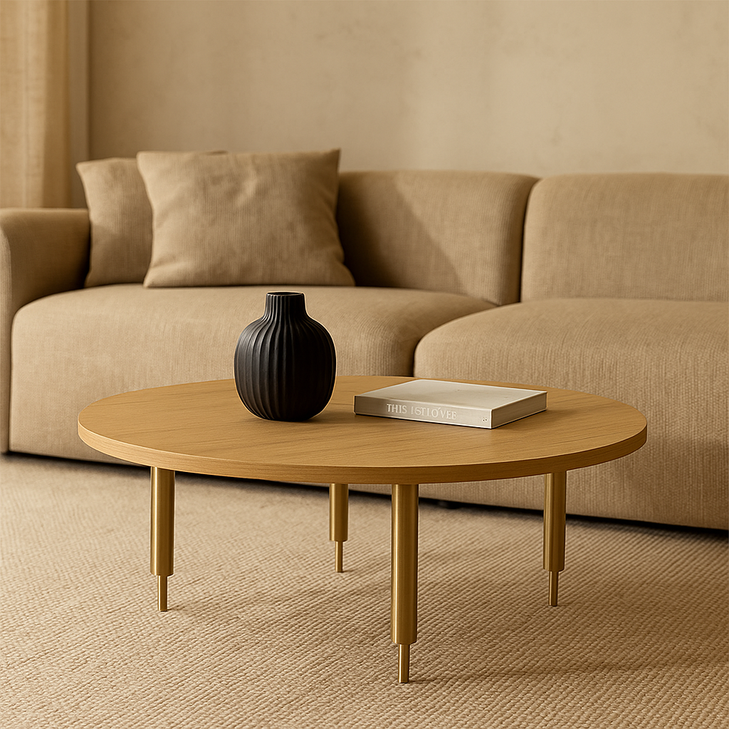 A mesa de centro Aygo se destaca pela leveza visual e pela harmonia entre materiais. Seu tampo arredondado, disponível em lâmina natural ou em acabamentos sólidos e metalizados, cria um visual sofisticado e versátil para diferentes propostas de decoração. A base em aço carbono pintado complementa o design com sutileza e resistência, resultando em uma peça equilibrada, moderna e funcional.