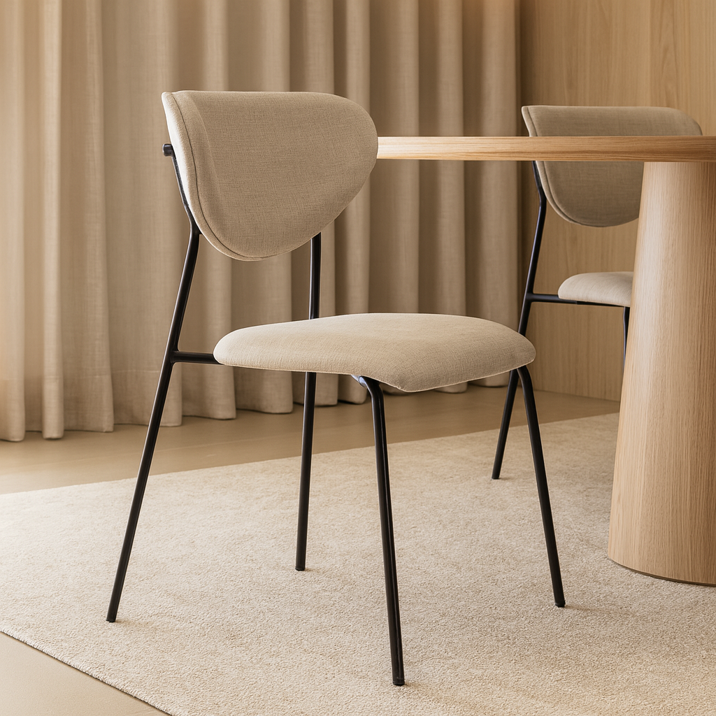 A cadeira Brisa combina curvas suaves e uma estética contemporânea, trazendo ao ambiente uma sensação acolhedora e elegante. Seu encosto curvado e acolchoado proporciona apoio ergonômico, enquanto o assento macio garante conforto durante longos momentos à mesa. A estrutura delgada complementa o visual leve e sofisticado.