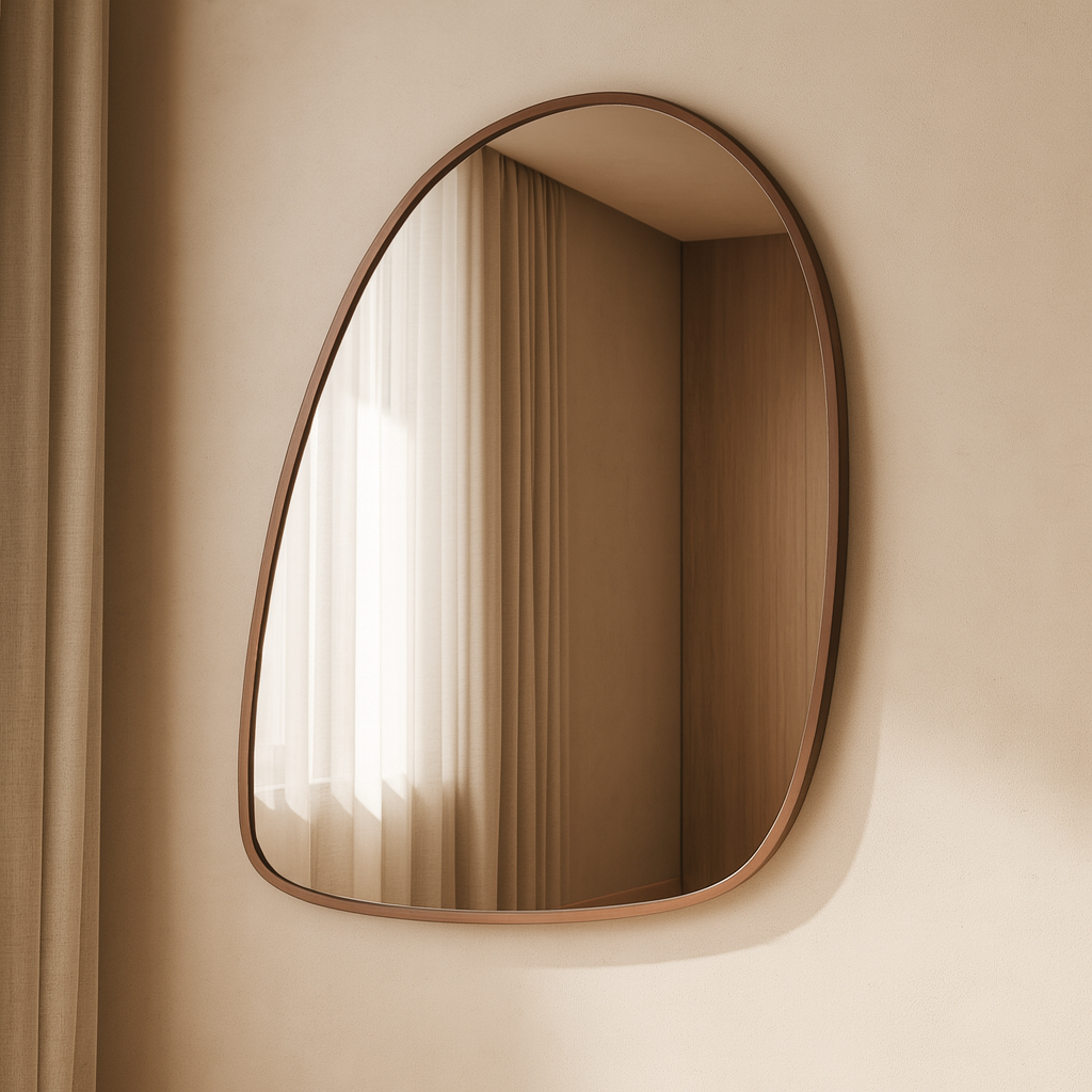 O espelho Class apresenta uma moldura de linhas suaves e assimétricas que cria um ponto focal elegante e contemporâneo. Sua forma orgânica adiciona dinamismo à decoração, enquanto o acabamento refinado valoriza propostas minimalistas, modernas ou naturais. Uma peça versátil para halls, salas, quartos e lavabos.