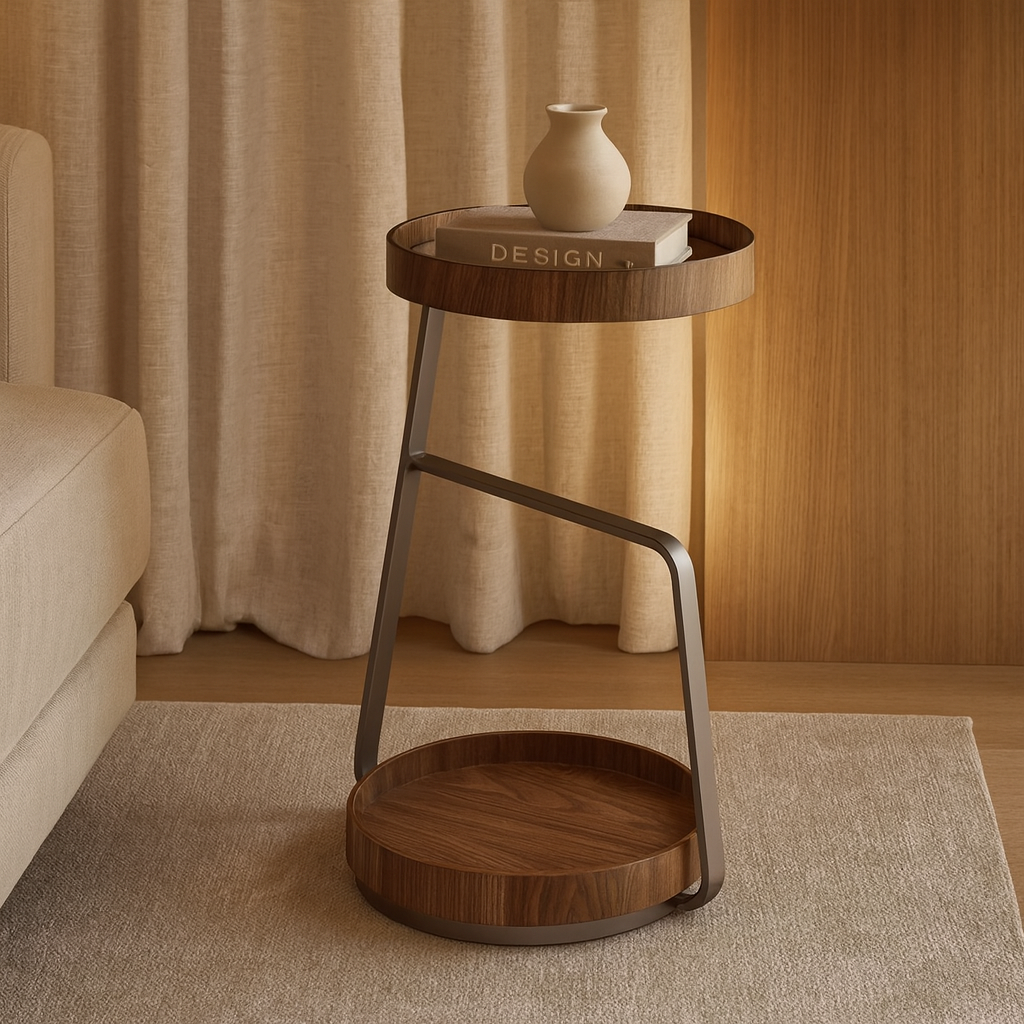 A mesa lateral Dubai traduz elegância contemporânea em um design marcante. Com tampos tipo bandeja em lâmina natural e base metálica de linhas geométricas, o modelo une leveza visual e funcionalidade.