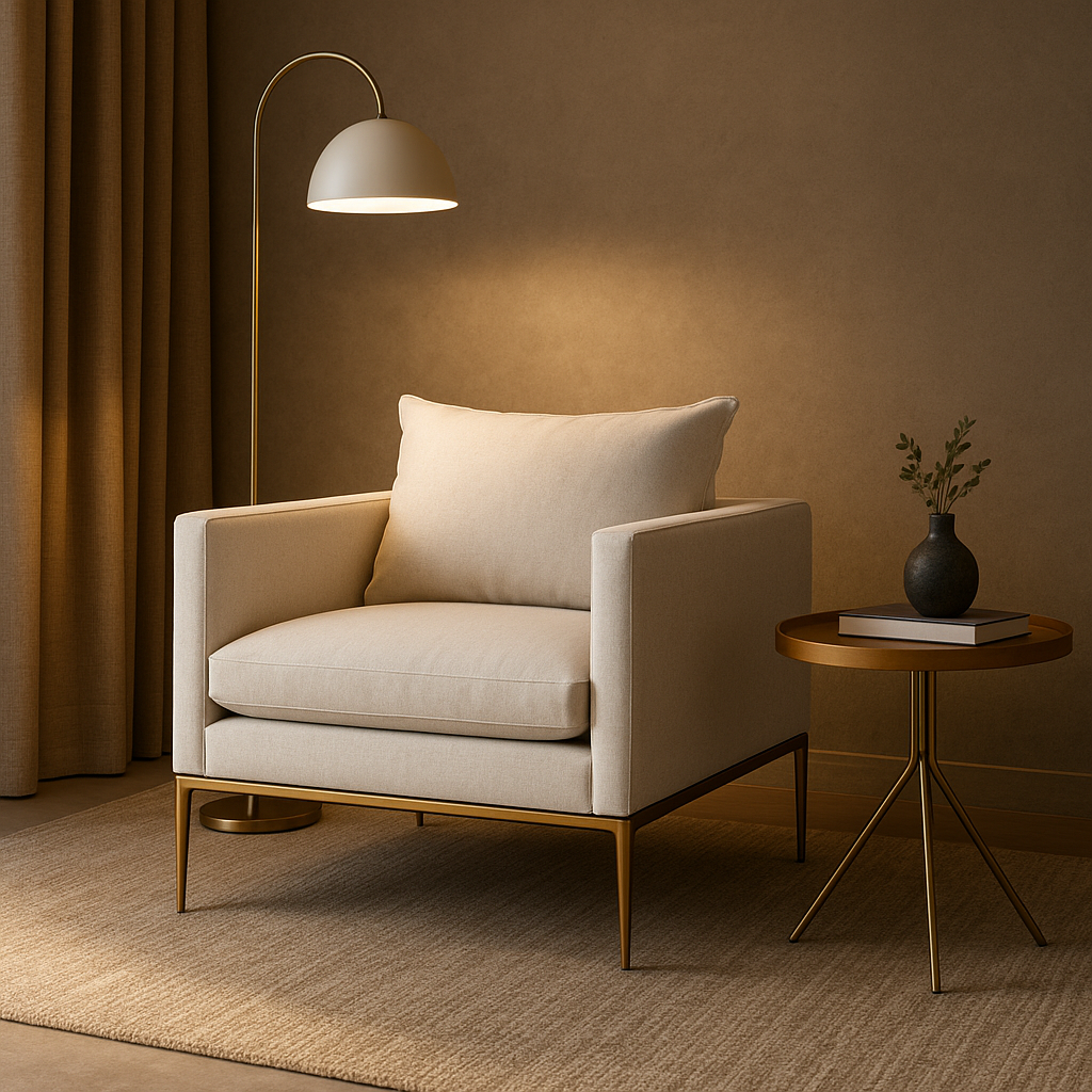 A Poltrona Flora traz linhas retas e atemporais, com um design sofisticado que valoriza qualquer ambiente. Seu assento macio e estrutura sólida transmitem a sensação de cuidado e aconchego, transformando momentos simples em experiências de bem-estar e leveza.