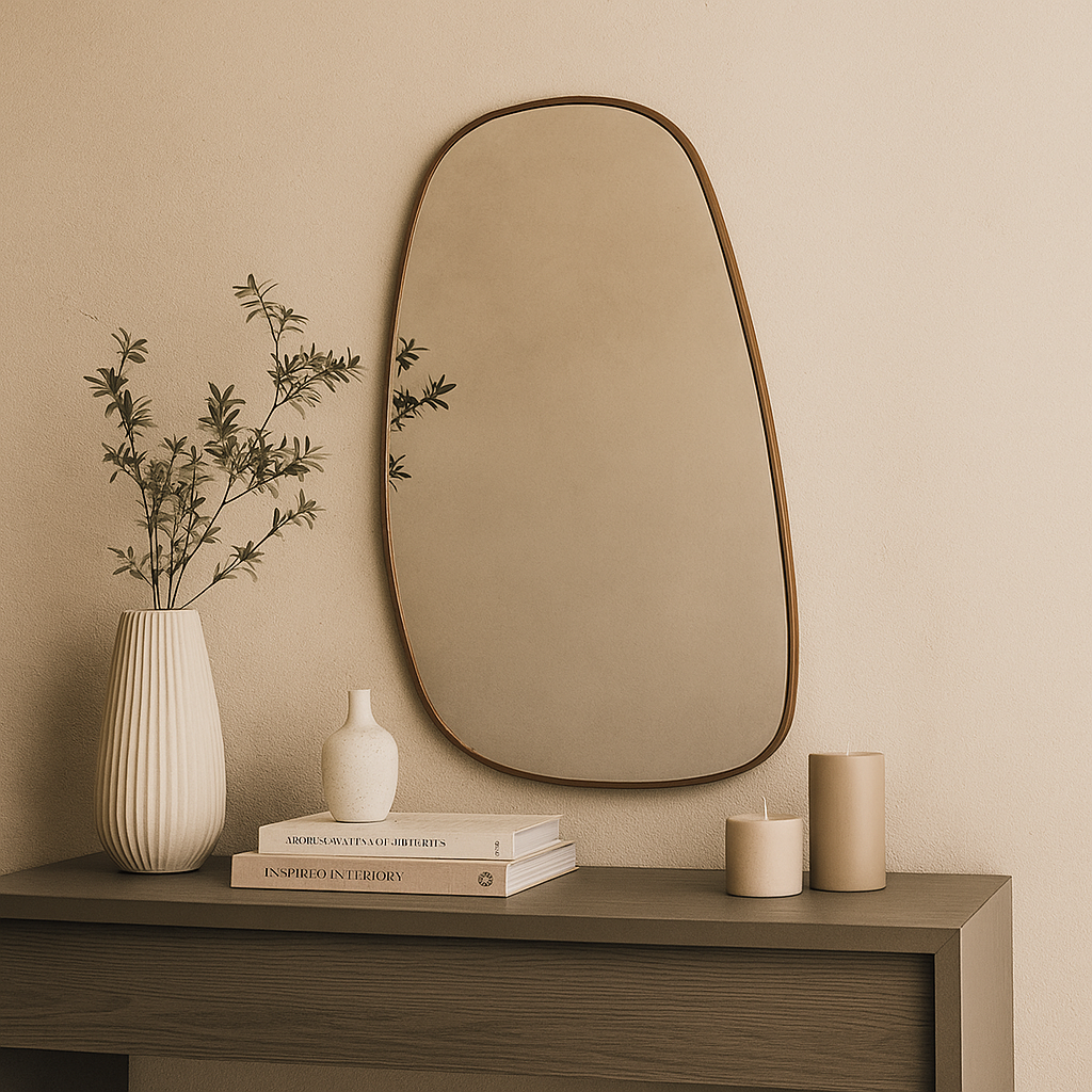 O espelho Orgânico Ibiza traz curvas suaves e um contorno assimétrico que adiciona movimento e autenticidade à decoração. Seu formato expressivo valoriza a parede onde é instalado, criando um ponto focal elegante e descontraído ao mesmo tempo. Ideal para halls, salas, dormitórios e espaços que pedem um toque artístico.