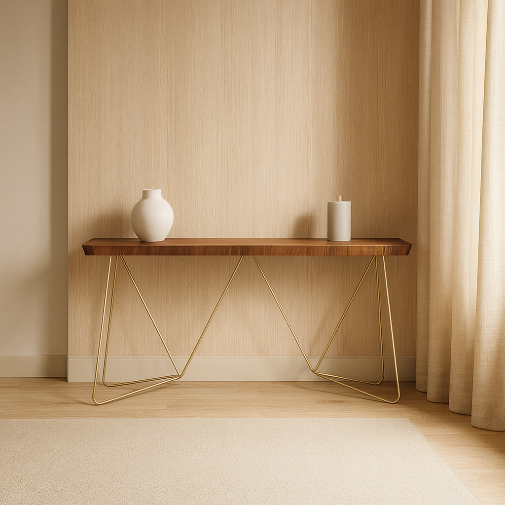 O aparador Ipanema combina um tampo robusto em lâmina natural de madeira com uma base em aço de desenho geométrico fluido, criando um efeito visual sofisticado e leve ao mesmo tempo. Seu design transforma paredes simples em cenários refinados, ideal para halls, salas de estar e ambientes sociais que pedem presença e personalidade.