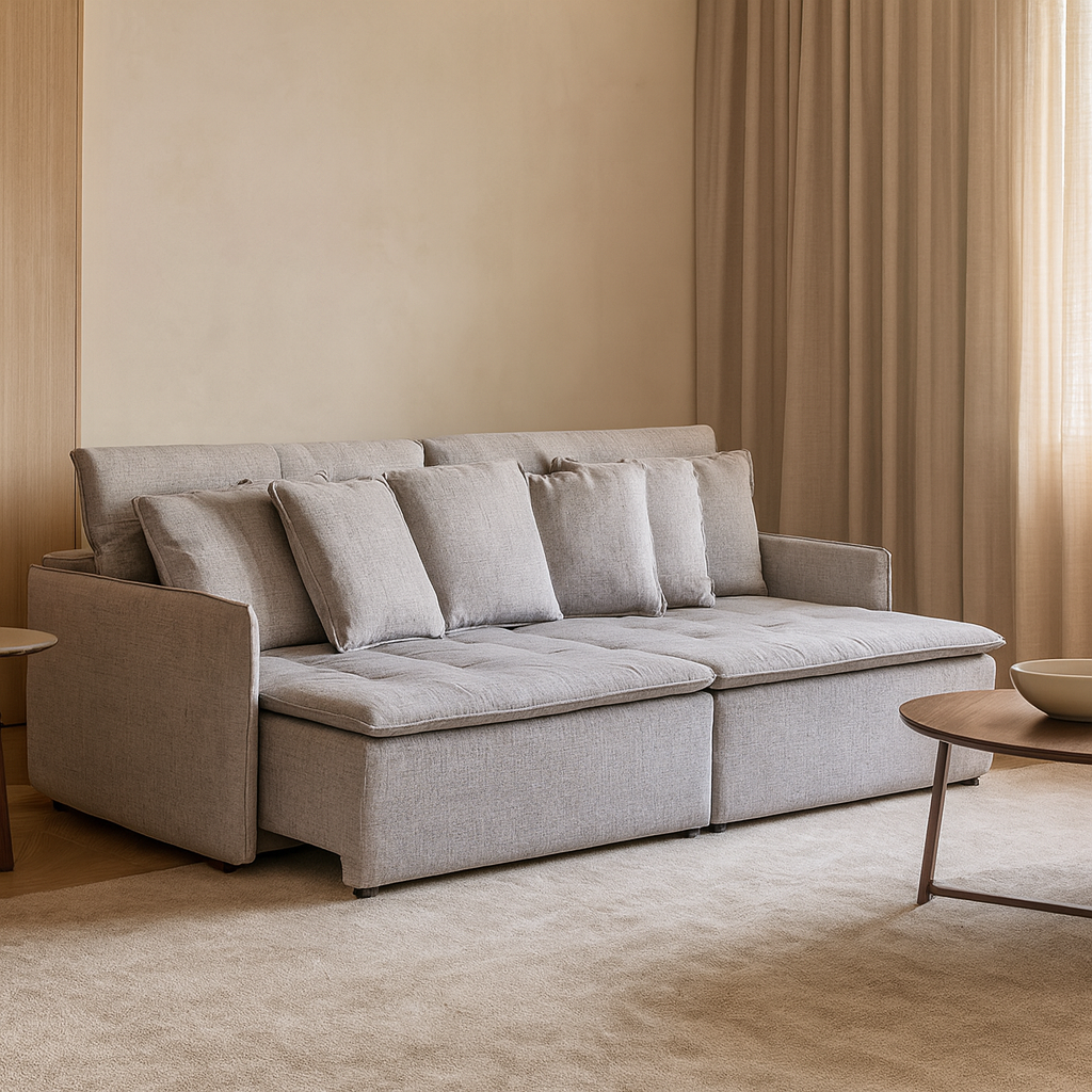 O Sofá Retrátil Londres combina design moderno e proporções equilibradas, oferecendo conforto e funcionalidade para o dia a dia. Seu assento retrátil com molas ensacadas e encosto reclinável garantem o máximo bem-estar, enquanto as almofadas soltas adicionam suavidade e charme ao ambiente. Um modelo versátil e acolhedor, perfeito para composições sofisticadas.