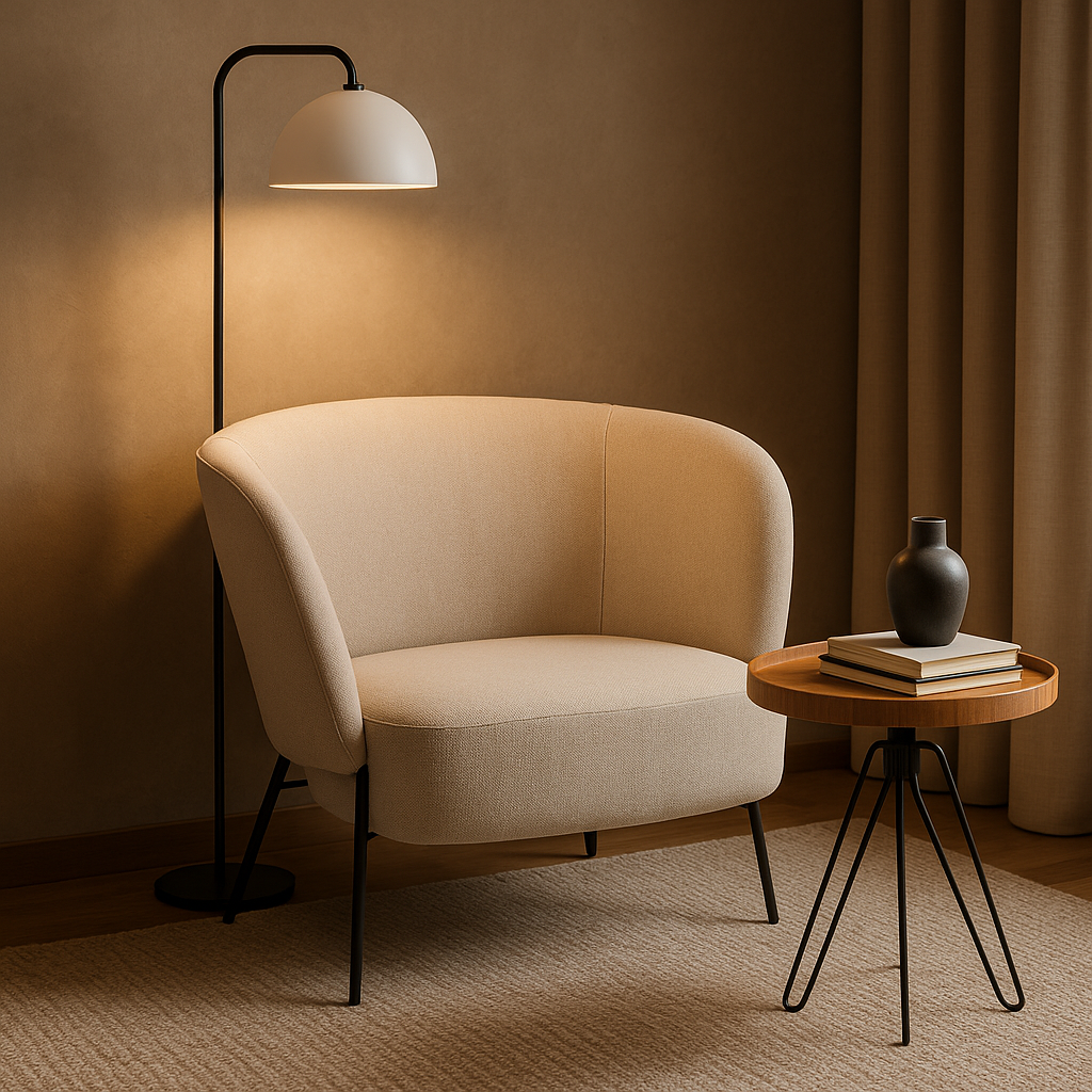 A Poltrona Lotus apresenta curvas sutis e elegantes que acolhem o corpo com suavidade. Sua estrutura metálica garante resistência, enquanto o estofado confortável transforma qualquer ambiente em um espaço de charme e aconchego.