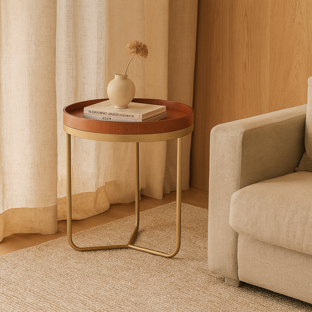 A mesa lateral Monaco traz um design que combina proporções equilibradas e materiais nobres. Seu tampo do tipo bandeja, em lâmina natural, destaca-se pela borda alta e acabamento primoroso. A base metálica, de linhas curvas e delicadas, garante leveza visual e um toque de sofisticação ao ambiente.