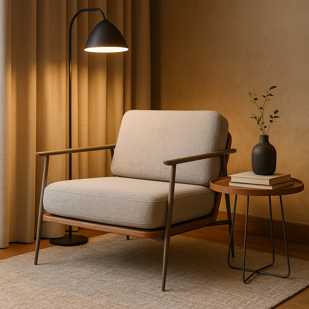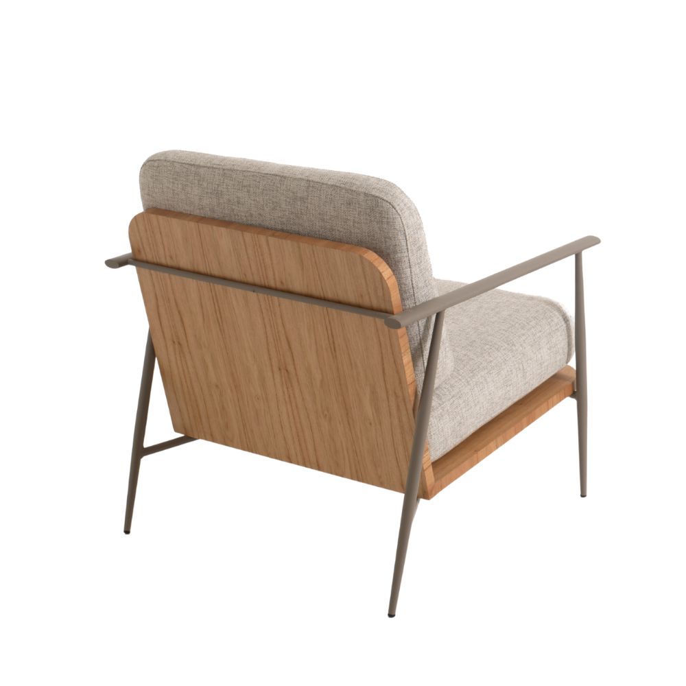 A poltrona combina linhas leves e design sofisticado para transformar qualquer ambiente em um espaço de descanso e inspiração. Seu equilíbrio entre aço, madeira natural e estofado macio traduz a essência da Spazio: móveis que cuidam, acolhem e embelezam o seu lar com personalidade.