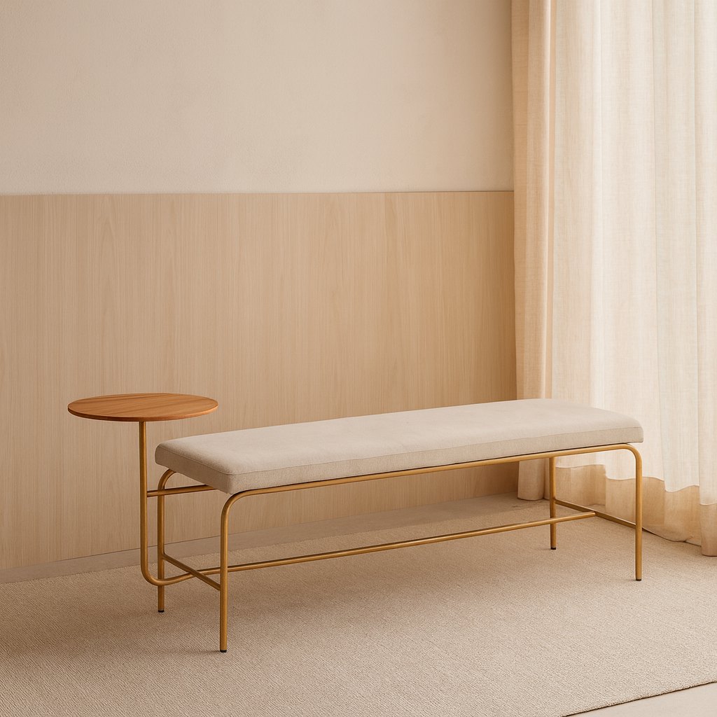 Sua mesa lateral integrada reforça o caráter versátil e inteligente do design — ideal para composições sofisticadas e acolhedoras.