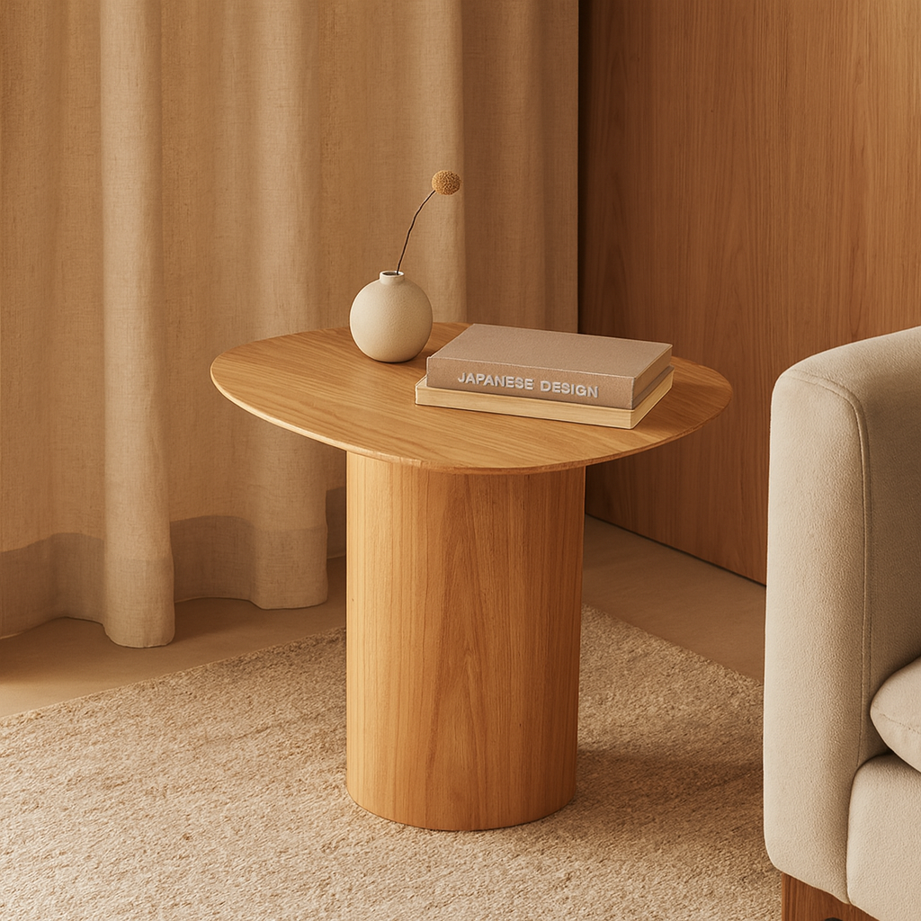 A mesa lateral Toronto traduz equilíbrio e elegância em uma peça única. O formato orgânico do tampo e a estrutura cilíndrica em madeira criam uma presença acolhedora e atemporal — perfeita para complementar espaços de estar com sofisticação natural.