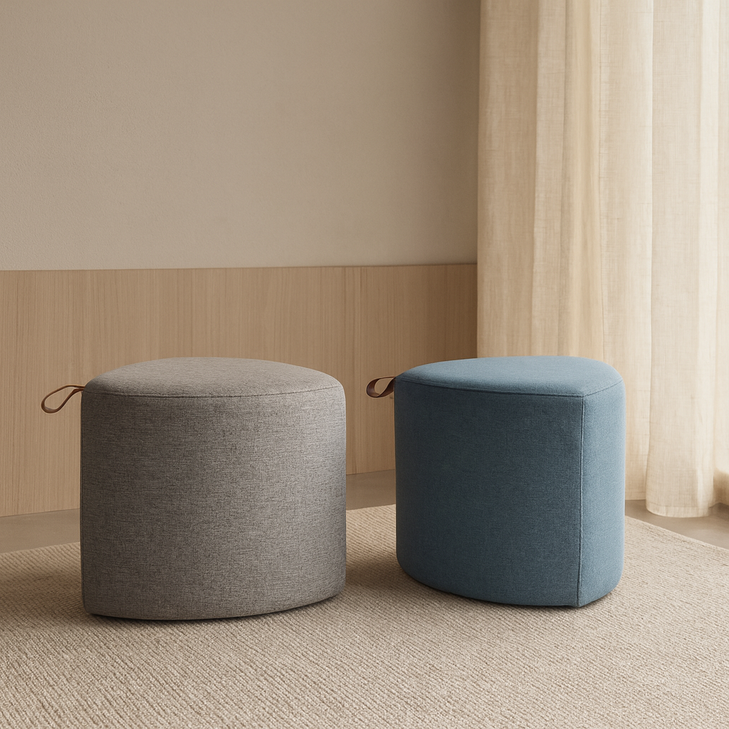 O Puff Tory traz formas suaves e um toque de modernidade, combinando praticidade e estilo em uma única peça. Seu design triangular com alça em couro une estética e funcionalidade, tornando-o ideal para diferentes espaços — do living ao quarto.
