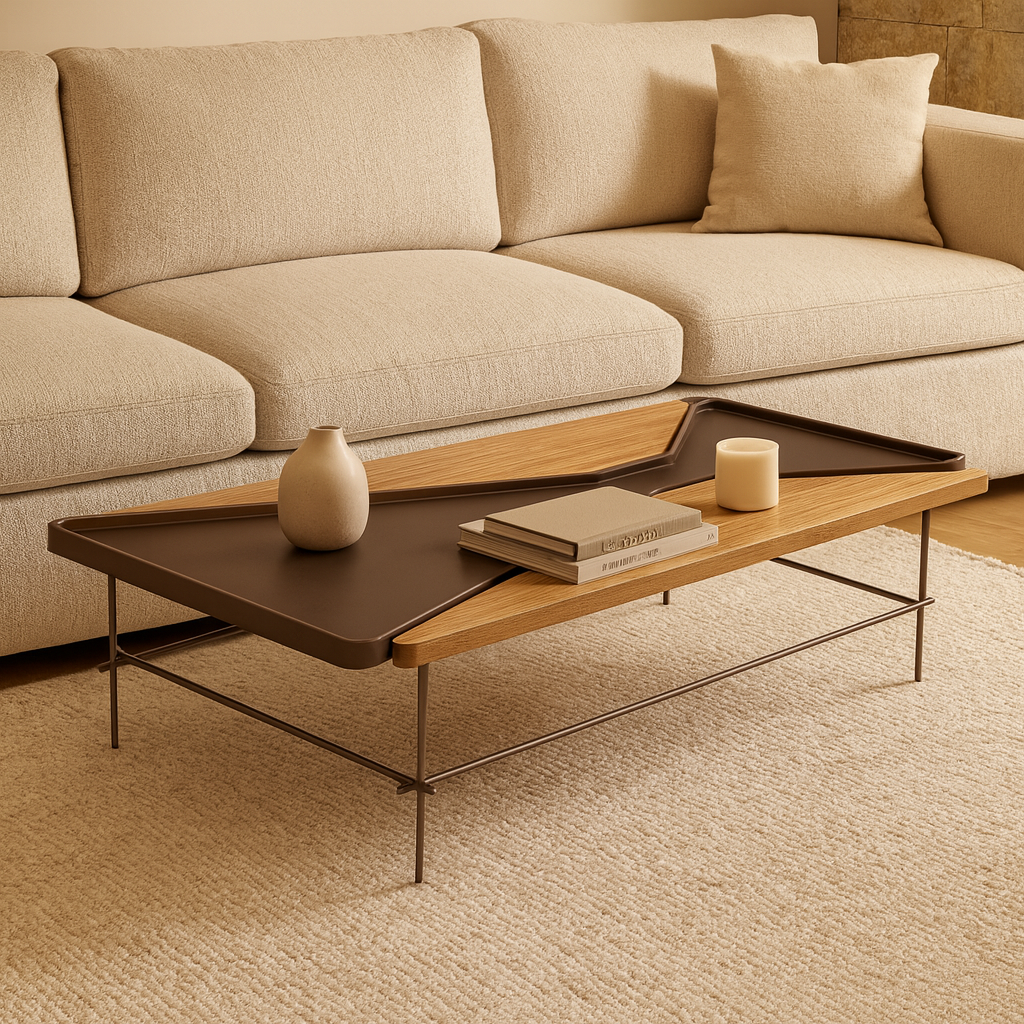 A mesa de centro Trevo impressiona pelo tampo assimétrico e pela composição elegante entre madeira e metal, criando uma peça funcional e artística ao mesmo tempo. Seu desenho contemporâneo adiciona dinamismo ao ambiente, oferecendo estilo e versatilidade para salas que valorizam personalidade e equilíbrio visual.