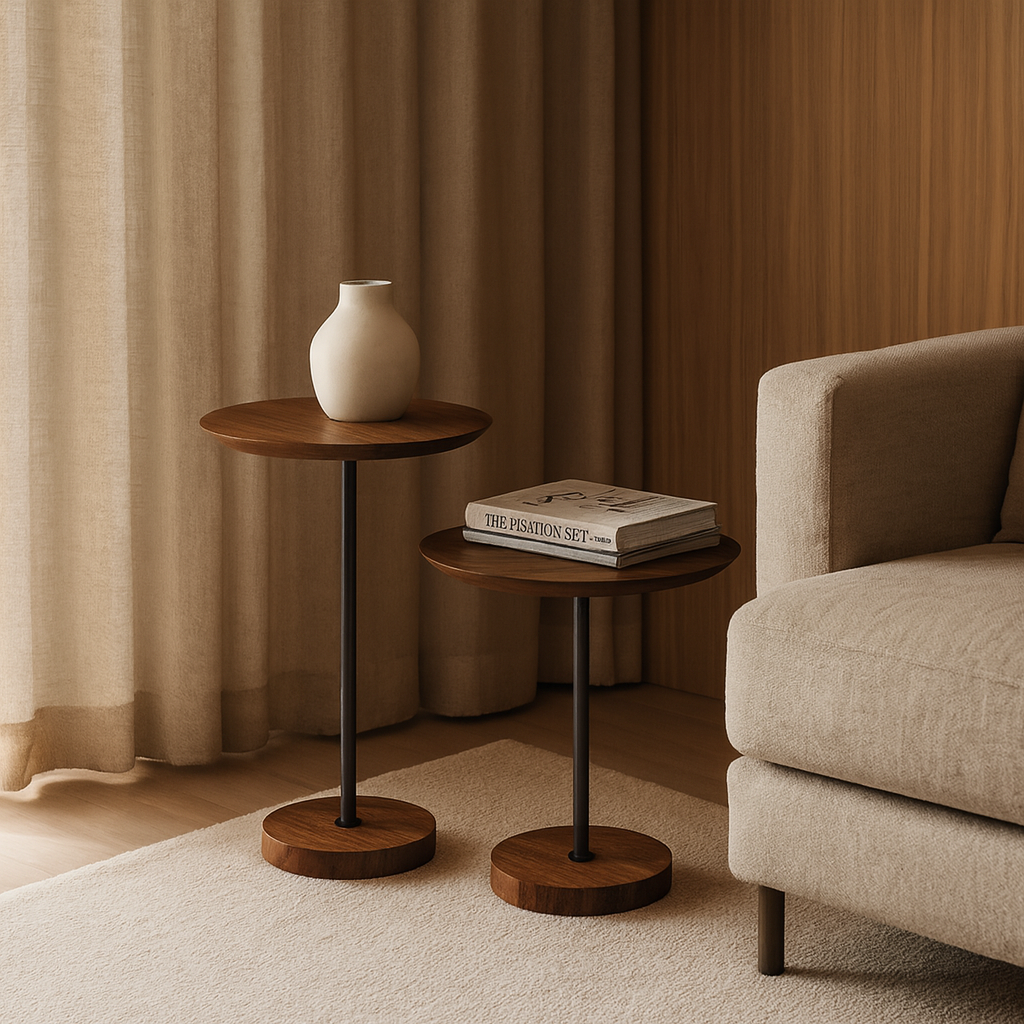 Com design equilibrado e funcional, o conjunto de mesas laterais Turano combina o calor das lâminas naturais com a leveza da estrutura metálica. Seu formato compacto e delicado se adapta com facilidade a diferentes composições, oferecendo praticidade e elegância em medidas ideais.